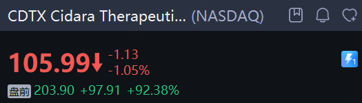 Cidara Therapeutics盤前飆升92%。默沙東接近達成收購這家流感治療藥物製造商的交易。《金融時報》報道稱,Cidara的估值可能會高於其33億美元的市值,交易最快可能於週五宣佈。