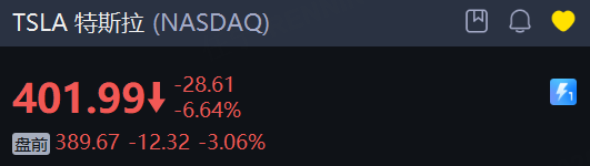 特斯拉 盤前跌超3%,昨日跌超6%,年內股價再次轉跌,可能成爲今年"科技七巨頭"中唯一負收益的股票。