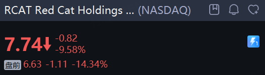 無人機公司Red Cat盤前大跌超14%。Q3業績、Q4營收指引均不及市場預期。