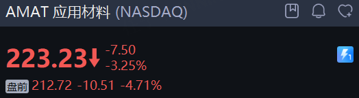 應用材料盤前跌近5%。Q4業績及Q1指引雙超預期,但出口限制或致2026年營收減少6億。