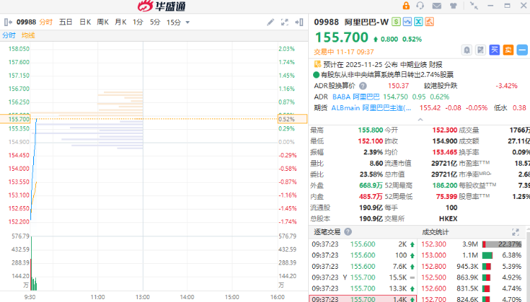 花旗稱,隨着阿里巴巴第二財季業績將於11月25日公佈,市場關注料將重回基本面及阿里在AI和雲領域的能力。阿里巴巴仍有約190億美元回購額度,預計業績公佈後公司將加快回購節奏。重申買入評級,認爲任何股價回調將是加倉機會。