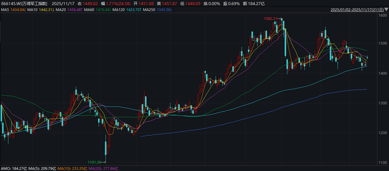 儘管存在階段性波動,但在政策扶持力度加大、地緣政治格局緊張升級、行業訂單回暖等多重邏輯的共同驅動下,2025年至今軍工板塊整體呈現震盪上行態勢。截至目前,萬得軍工指數年初至今累計漲幅已超11%。