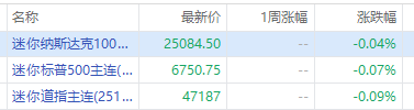 三大期指週一盤前小幅走低,截至發稿,納指期貨 $NQmain 跌0.04%,標普500期貨 $ESmain 跌0.07%,道指期貨 $YMmain 跌0.09%。