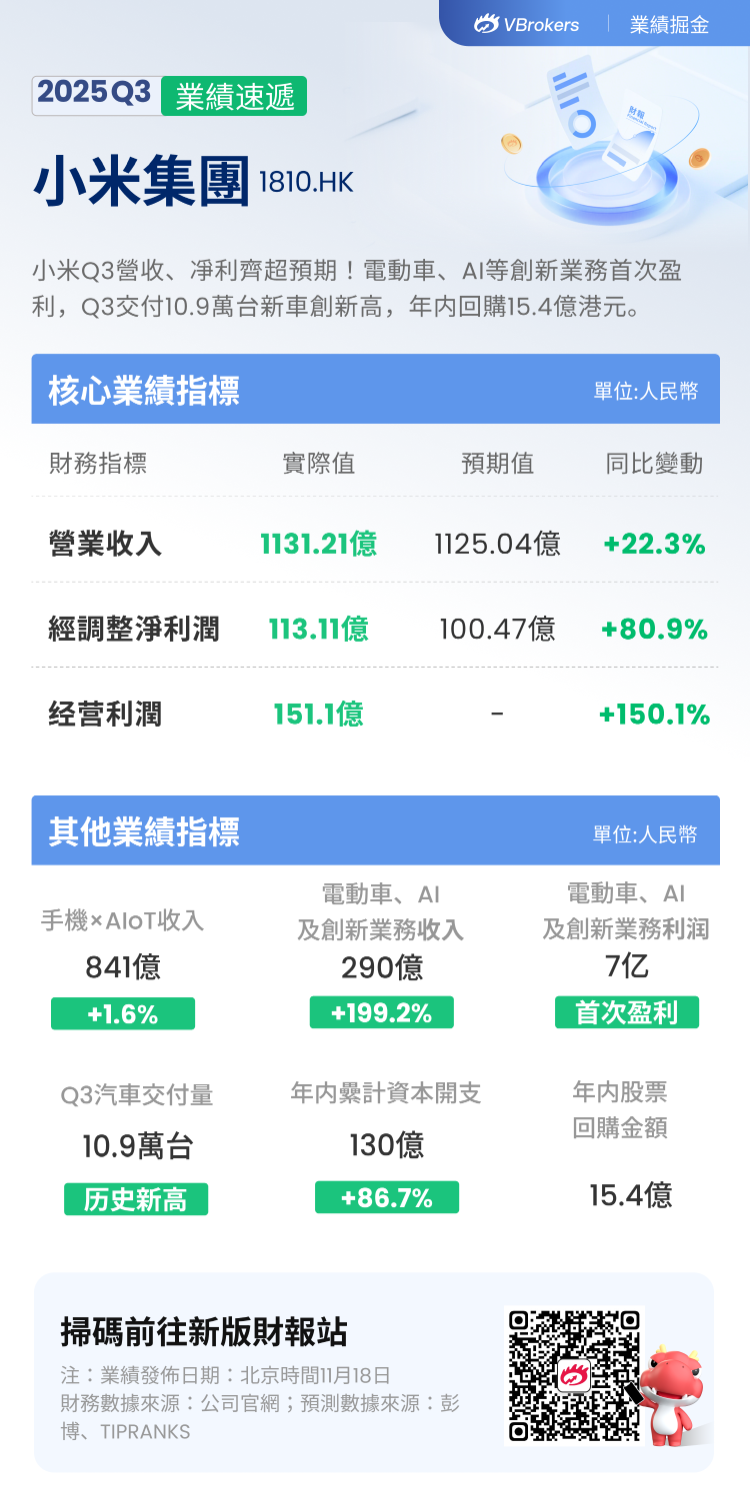 🎦點擊直播:【11月18日 19:30直播】小米集團2025年第三季度業績電話會
