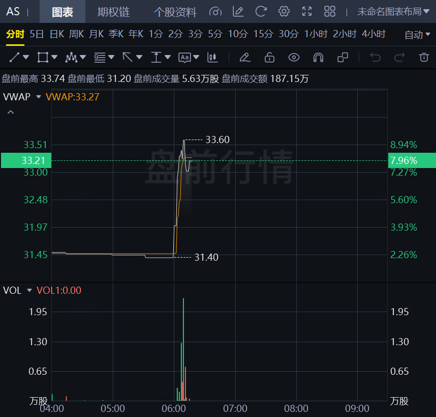 財報發佈後,亞瑪芬體育美股盤前漲近8%。