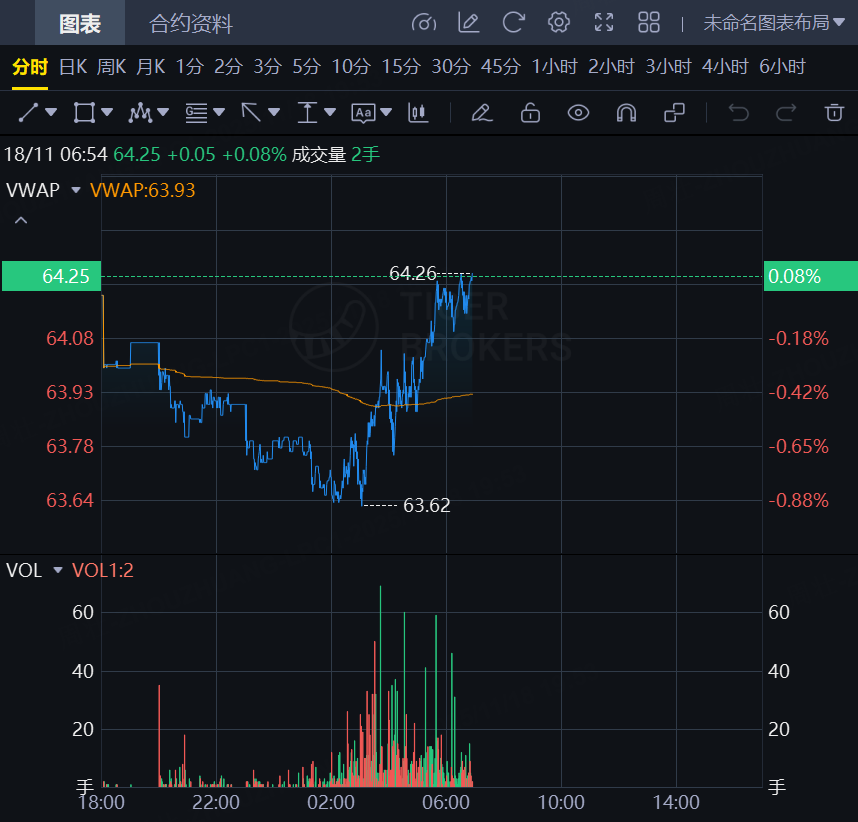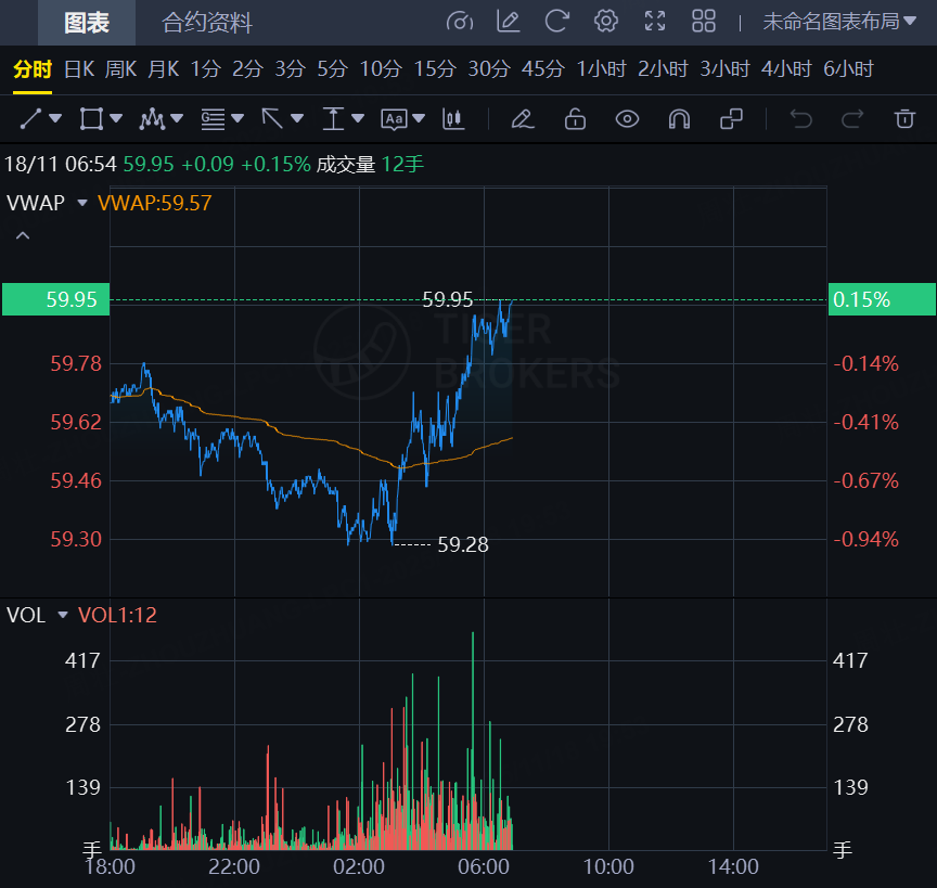原油期貨由跌轉漲,截止發稿,WTI原油漲0.15%,報59.95美元/桶;布倫特原油漲0.08%,報64.25美元/桶。