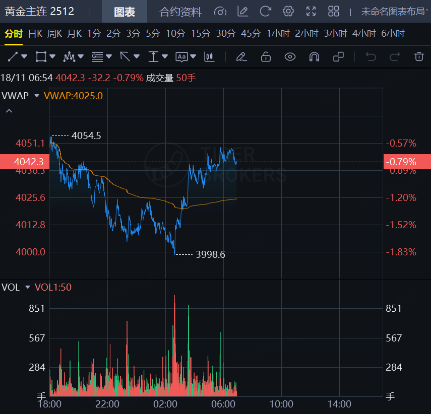 黃金期貨跌幅收窄,截止發稿,跌0.79%,報4042.3美元/盎司。