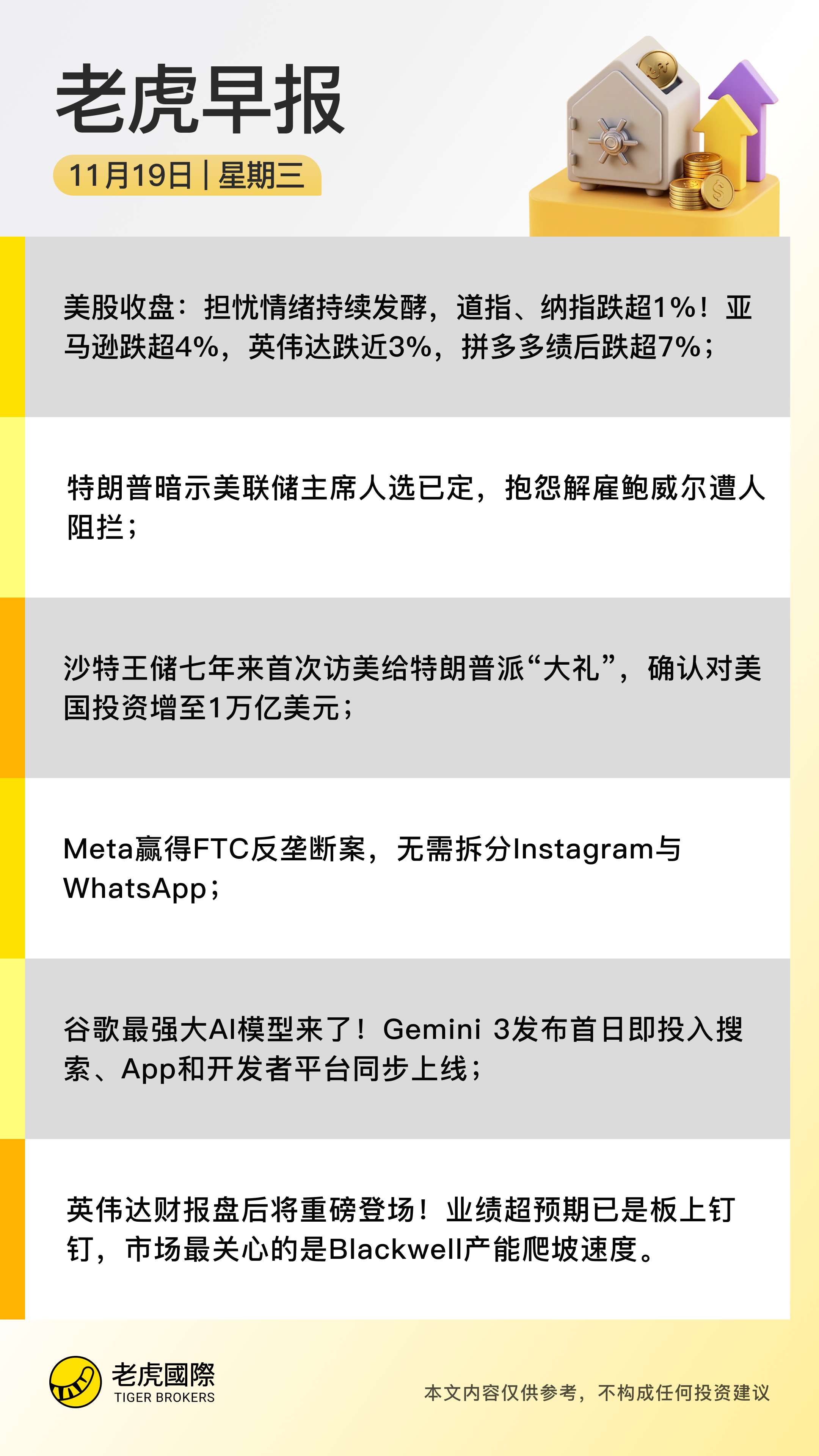 AI芯片龍頭英偉達下跌近3%,英偉達本月已下跌超10%,市場正等待其將在週三收盤後公佈的三季度業績。