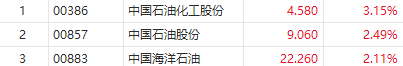 華盛資訊11月19日訊,港股石油股盤中持續上揚,截至發稿,中國石油化工股份漲超3%,中國石油股份、中國海洋石油漲超2%。
