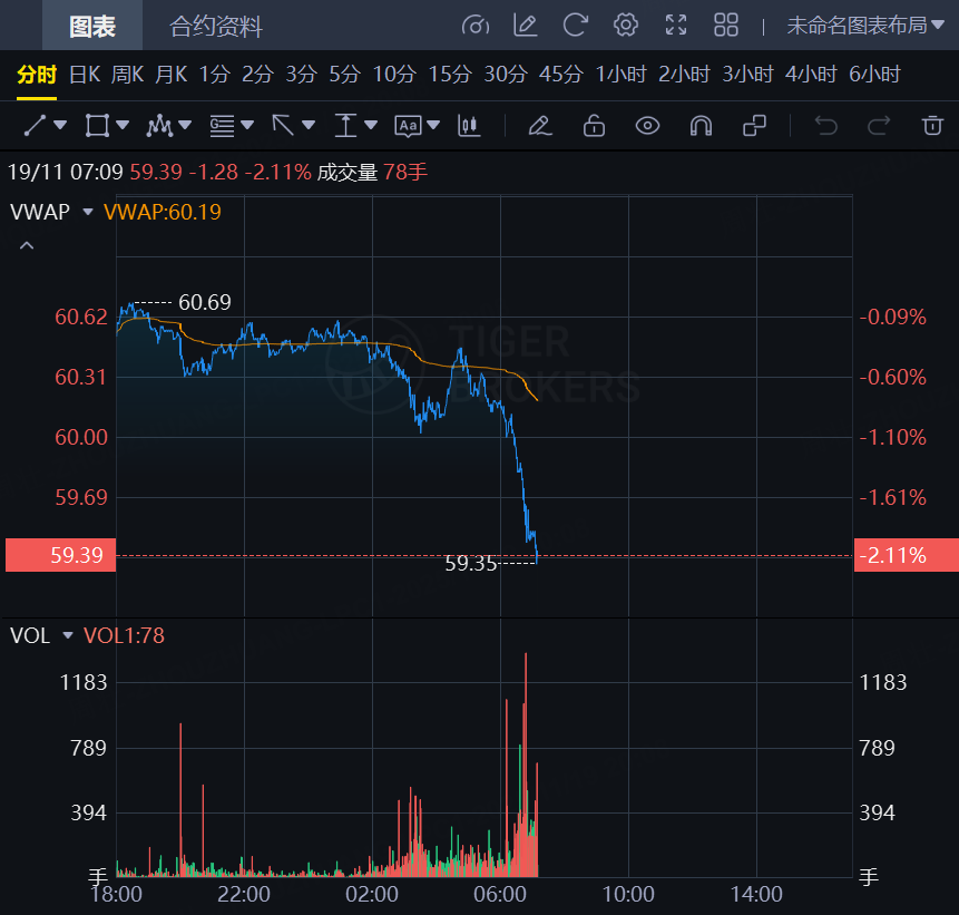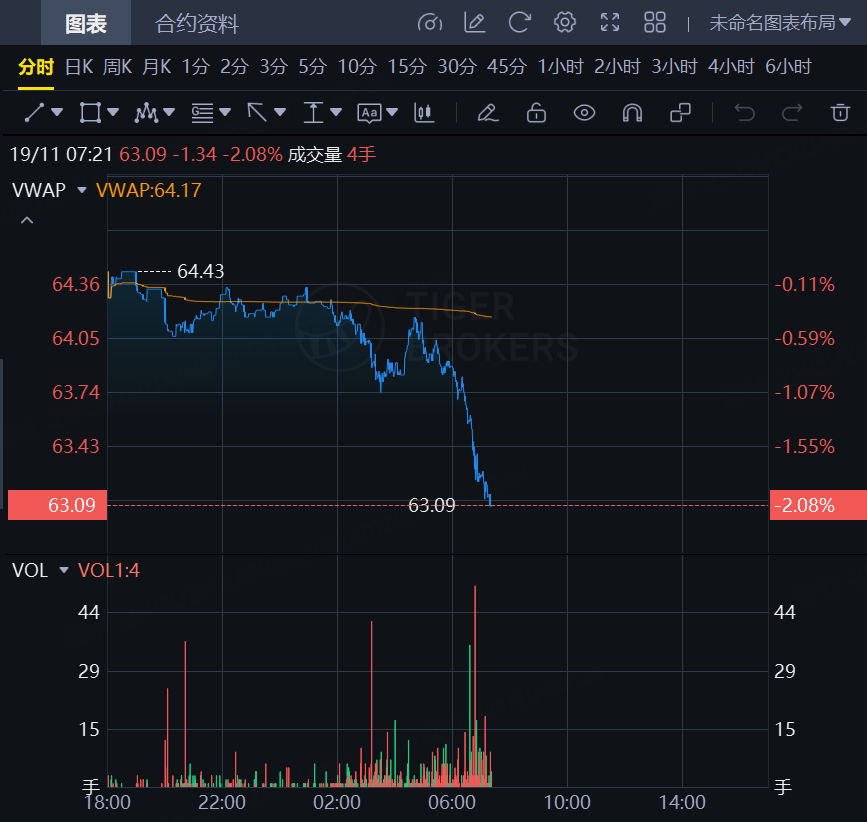 原油期貨跌幅擴大,截止發稿,WTI原油跌2.11%,報59.39美元/桶;布倫特原油跌2.08%,報63.09美元/桶。