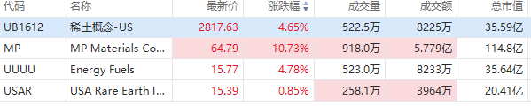 華盛資訊11月19日訊,美股稀土概念股盤中拉昇,MP Materials漲超10%,The Metals漲超7%,Energy Fuels漲超6%,Critical Metals漲超4%,United States Antimony漲超2%。消息面上,MP公司與美國國防部、沙特阿拉伯礦業公司(Maaden)合作,共同開發稀土精煉合資企業。