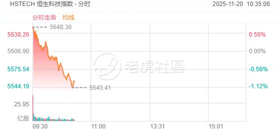 11月20日,港股盤中走低,恒生科技指數日內跌超1%。