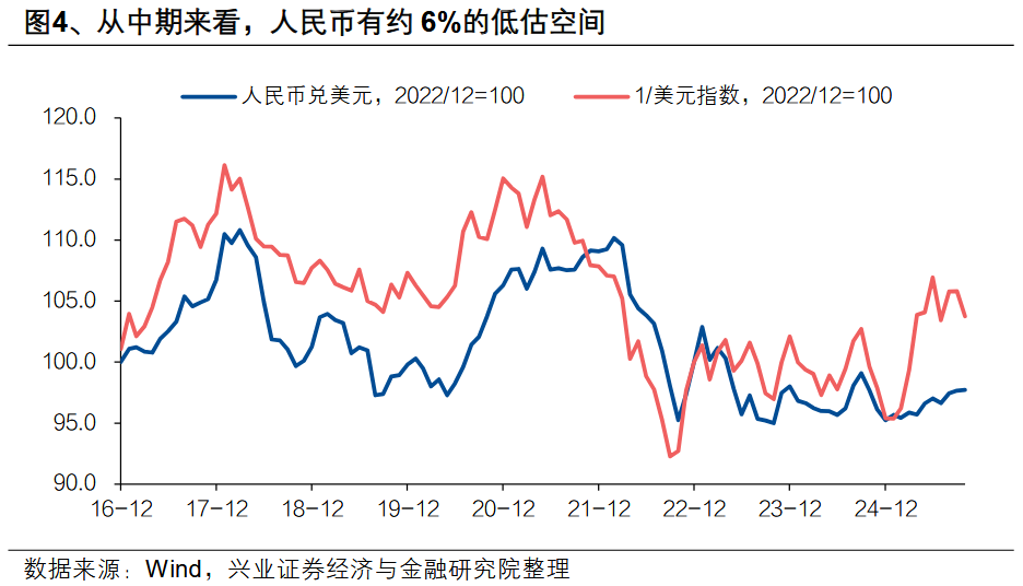 今年以來人民幣對美元匯率累積顯著漲幅,時值年末,展望來年,市場圍繞美聯儲官員鷹派言論下美元是否由弱轉強、人民幣升值是否近尾聲展開討論。我們在近期電話會議(參見《再談“棋至中盤”》)中曾指出,未來6至12個月內人民幣較美元出現較大幅度升值的可能性是值得關注的。在此基礎之上,本報告將對此進行更系統的闡述:短期,美國被動松,中國主動穩,支撐人民幣升值趨勢延續。美國貨幣政策受財政與AI“大而不能倒”雙重壓力裹挾,被迫寬鬆可能是大概率事件。反觀中國,貨幣政策則展現出更強的獨立性與戰略定力。這種“美松中穩”的格局,支撐短期人民幣對美元走強。中長期:人民幣匯率系統性低估將逐步修正。自2023年以來,人民幣存在約6%的系統性低估。但此前擔憂的現實基礎正在逐步瓦解:跨境支付獨立性增強,人民幣的風險溢價應壓縮。一方面,美對俄金融制裁已被證明失敗,反而成爲全球“去美元化”的加速器。更重要的是,一個獨立於SWIFT+CHIPS體系的人民幣跨境支付網絡正在形成,多邊央行數字貨幣橋”(m-CBDC Bridge)項目,依託區塊鏈技術實現了跨境支付的實時清算,在底層架構上完成了對SWIFT報文的替代。因此,曾經市場所擔憂的人民幣跨境支付渠道被“卡脖子”的風險,其現實基礎已被上述體系的完善所瓦解。市場對於中美力量對比認知的重構,會逐步向貨幣傳導。特朗普2.0上臺一年以來的施政實踐,讓市場逐步認識到美國硬實力已今非昔比,這一變化已開始影響其對外軟實力。而相較於對美硬實力衰落的認知,全球對於美元的配置仍在高位。這符合歷史規律——國家興衰通常遵循“工業優勢→商業優勢→金融主導”的路徑,金融與貨幣領域的變化往往滯後於硬實力的變遷。換言之,當前中國硬實力的持續積累,理應逐步體現爲金融與貨幣影響力的提升。加之特朗普“小院高牆”政策加劇了美元“易不到貨”的風險,這一進程有望進一步加速。從這個長期視角來看,過去幾年人民幣的系統性低估狀態缺乏持續基礎,未來有望逐步修正,人民幣較美元出現較大幅度升值的可能性值得關注。今年以來,人民幣對美元匯率已累積顯著漲幅。時值年末,展望來年,在近期多位美聯儲官員陸續發表偏鷹派言論的背景下,市場對美元是否即將由弱轉強、以及本輪人民幣升值是否已接近尾聲的討論有所升溫。我們在近期電話會議(參見《再談“棋至中盤”》)中曾指出,未來6至12個月內人民幣較美元出現較大幅度升值的可能性是值得關注的。在此基礎之上,本報告將對此進行更系統的闡述,並進一步展開我們的分析與研判。短期:美國被動松,中國主動穩,支撐人民幣升值趨勢延續美國貨幣政策受財政壓力裹挾——以“降息+量化寬鬆/YCC”緩解財政負擔。我們在報告《從關稅戰到賣“金卡”,特朗普在折騰啥》指出,特朗普本屆任期內最大的約束是其財政壓力——過去幾年高企的利率,導致美國聯邦債務的利息支出大幅增加。儘管通過加徵關稅、DOGE削減開支等舉措對財政進行了“開源節流”,但特朗普政府當前仍面臨4000億美元左右的額外利息負擔(相較於特朗普1.0時期)。聯儲單純降息並不能有效緩解利息支出壓力——因爲短端利率的下行並不能降低長債融資成本。因此,能否迫使聯儲在降息的同時進行量化寬鬆——壓低整條收益率曲線——是特朗普打開財政空間的關鍵。美國貨幣政策亦受金融市場裹挾——以流動性寬鬆延續AI高估值。正如我們在此前報告中所分析的,當前AI無論是對於美國經濟,還是對於美股市場,都已是“大而不能倒”。然而,在美國AI產業長期發展邏輯並不堅實的情況下(參見《美國AI神話褪色,市場”三殺“風險上升》),流動性對於AI敘事維繫的重要性明顯上升:一是近期聯儲官員的鷹派發言已引發美股大波動,指向當前美股的高估值水平已開始對流動性環境高度敏感。二是AI巨頭們已進入基礎設施建設(如算力中心、能源配套)等重度資本投入階段,資本開支佔營收比重持續攀升,AI巨頭們已開始轉向債務融資。若貨幣環境收緊導致融資成本上升,可能引發AI板塊估值大幅調整,這一風險在2026年中期選舉臨近的背景下是特朗普政府難以承受的。中國的貨幣政策保持獨立性與戰略定力,支撐人民幣升值趨勢延續。儘管未來不排除出現美歐經濟“比爛”(歐洲財政寬鬆對經濟的提振效果不及今年市場的預期),導致美元指數自身出現波動。但整體而言,相較於美歐貨幣政策被財政、債務與金融市場穩定等多重因素裹挾的被動局面,中國貨幣政策明顯展現出更強的獨立性與戰略定力——2025年第三季度《中國貨幣政策執行報告》強調“保持合理的利率比價關……支持銀行穩定淨息差,拓寬貨幣政策逆週期調節空間”。從這個視角來看,短期美國貨幣政策被動松+中國貨幣政策主動穩,人民幣相對美元的幣值走強可能尚未走完。2023年以來,人民幣匯率持續弱於歷史合理水平,低估幅度或達到6%。2017年之後,人民幣匯率長期處於被低估的狀態,2020年中國率先復甦一度校正了這一低估的狀態,但2023年之後人民幣被低估的狀態再次出現,並持續至今。對比美元指數的走弱程度,人民幣系統性低估幅度可能達到約6%。此前市場對人民幣的系統性擔憂主要集中在兩個方面:一是在美掌控全球金融體系的背景下,中美博弈加劇可能導致人民幣面臨金融制裁風險;