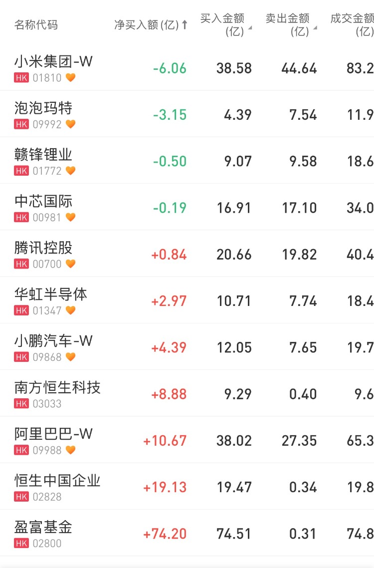 南向資金買入盈富基金超74億港元,賣出小米集團超6億港元