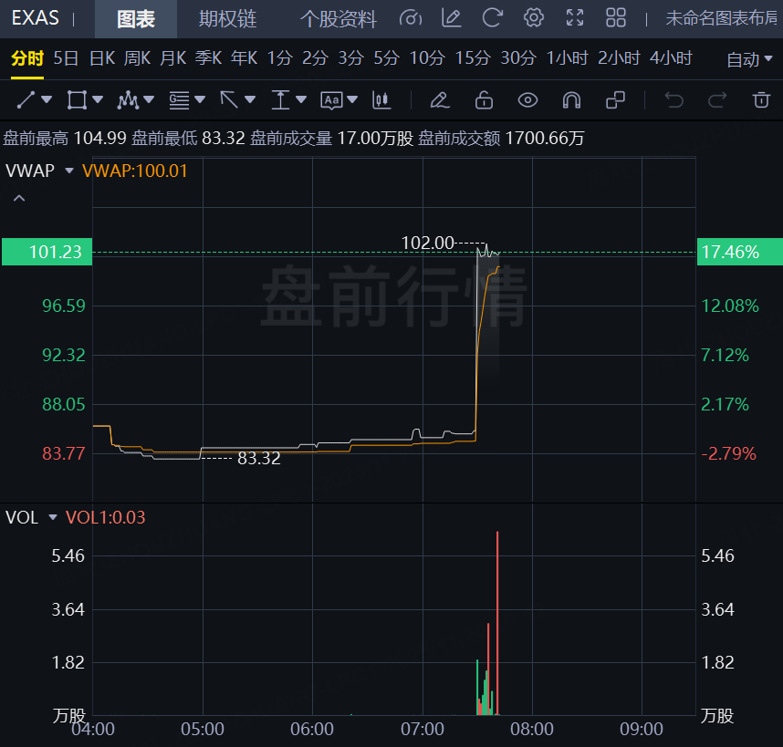 11月20日,精密科學美股盤前暴漲17%。消息面上,雅培將以每股105美元現金收購精密科學,股權總價值約210億美元。