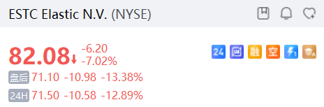 Elastic跌近13%,業績超預期並上調指引,但投資者仍對增長前景感到擔憂。