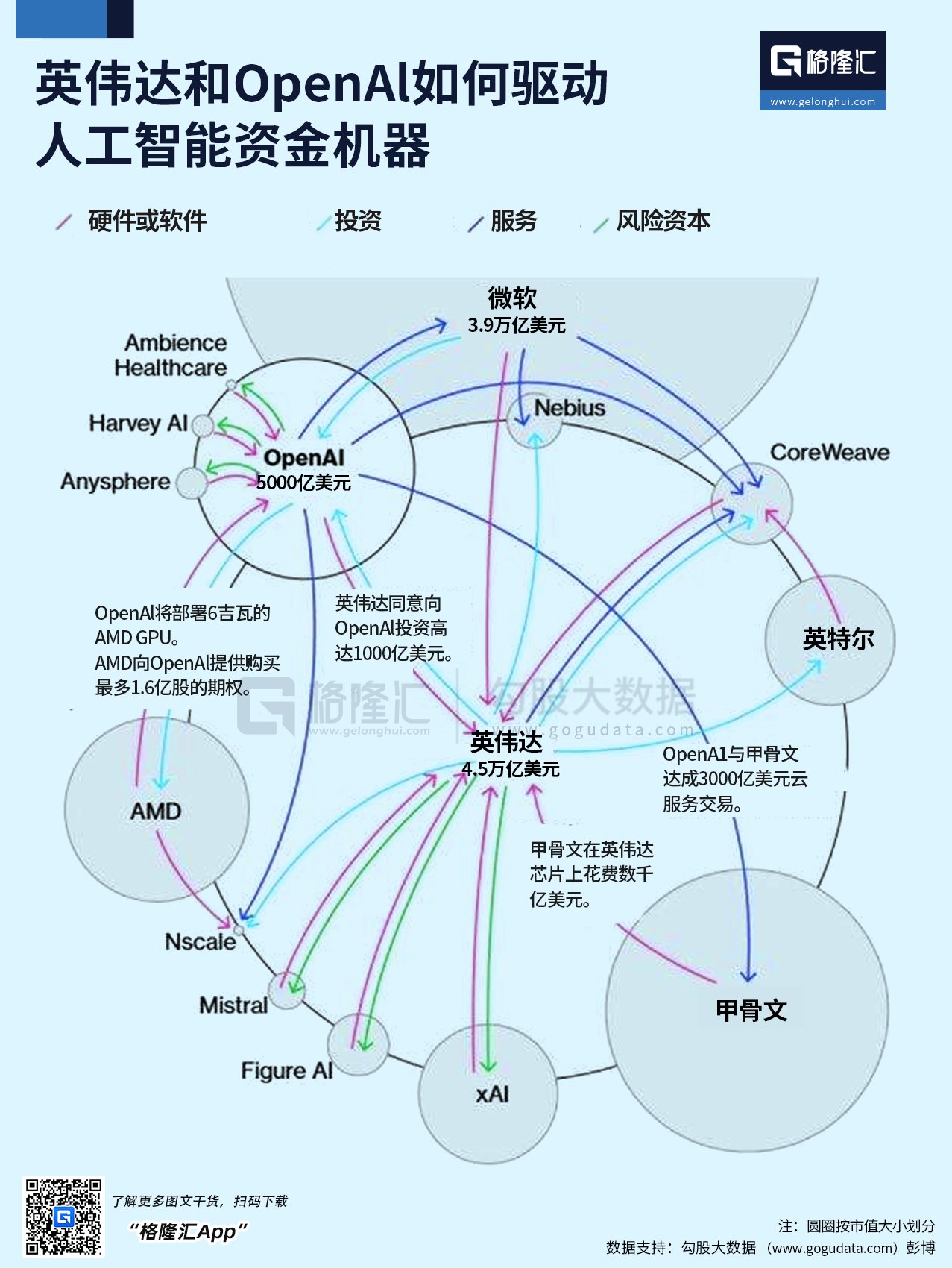 更令人髮指的是:英偉達向xAI注資20億美元,xAI卻借貸125億美元採購英偉達芯片;微軟向OpenAI投入130億美元,OpenAI承諾斥資500億美元購買微軟雲服務;微軟爲該雲平臺訂購價值1000億美元的英偉達芯片;甲骨文向OpenAI提供3000億美元雲服務額度,OpenAI則爲甲骨文數據中心訂購英偉達芯片。同一筆資金在不同公司間循環往復,被多次計入營收。英偉達記賬銷售額,卻無人真正付款。賬單日益陳舊,庫存不斷堆積,現金流始終缺席。