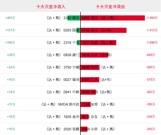 淡倉(認沽證及熊證)方面,近5日合計,舜宇光學科技、國泰航空以及中國平安等相關淡倉分別約403萬、121萬及106萬港元資金淨流入部署;泡泡瑪特、騰訊控股以及比亞迪等相關淡倉則分別約1984萬、1412萬以及1098港元資金淨流出。