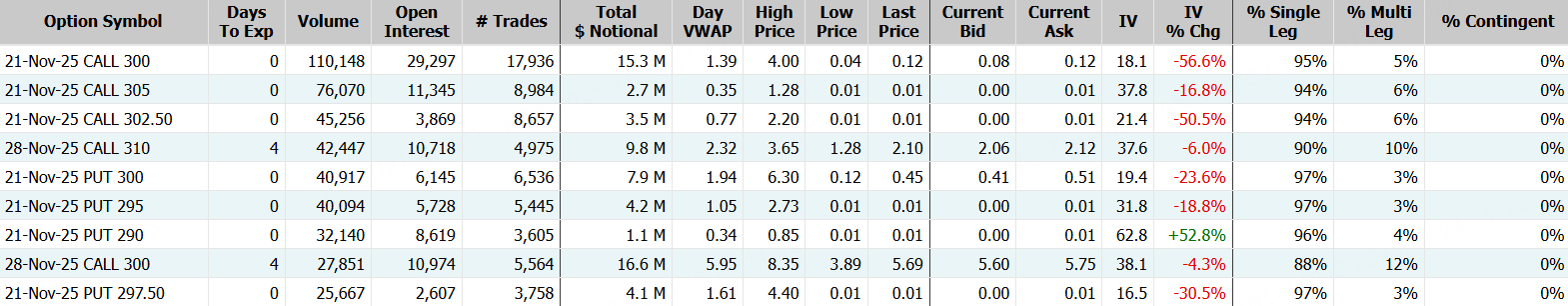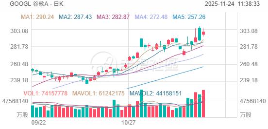 期權方面,谷歌A當日期權成交118.14萬張,較90日均量放大近3倍,看漲期權佔比攀升至62.8%,其中於11月21日到期的300美元行使價的看漲期權成交居前,成交逾11萬張。