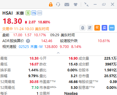禾賽飆升近20%,公司發佈自研RISC-V激光雷達主控芯片費米C500;
