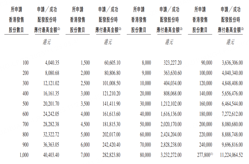 乙組門檻爲14萬股,申購所需資金約565.65萬港元。