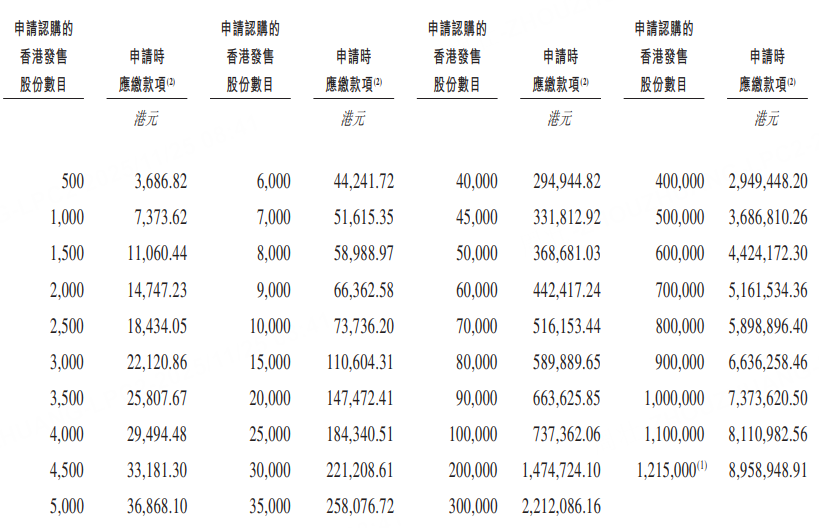 乙組門檻爲70萬股,申購所需資金約516.15萬港元。