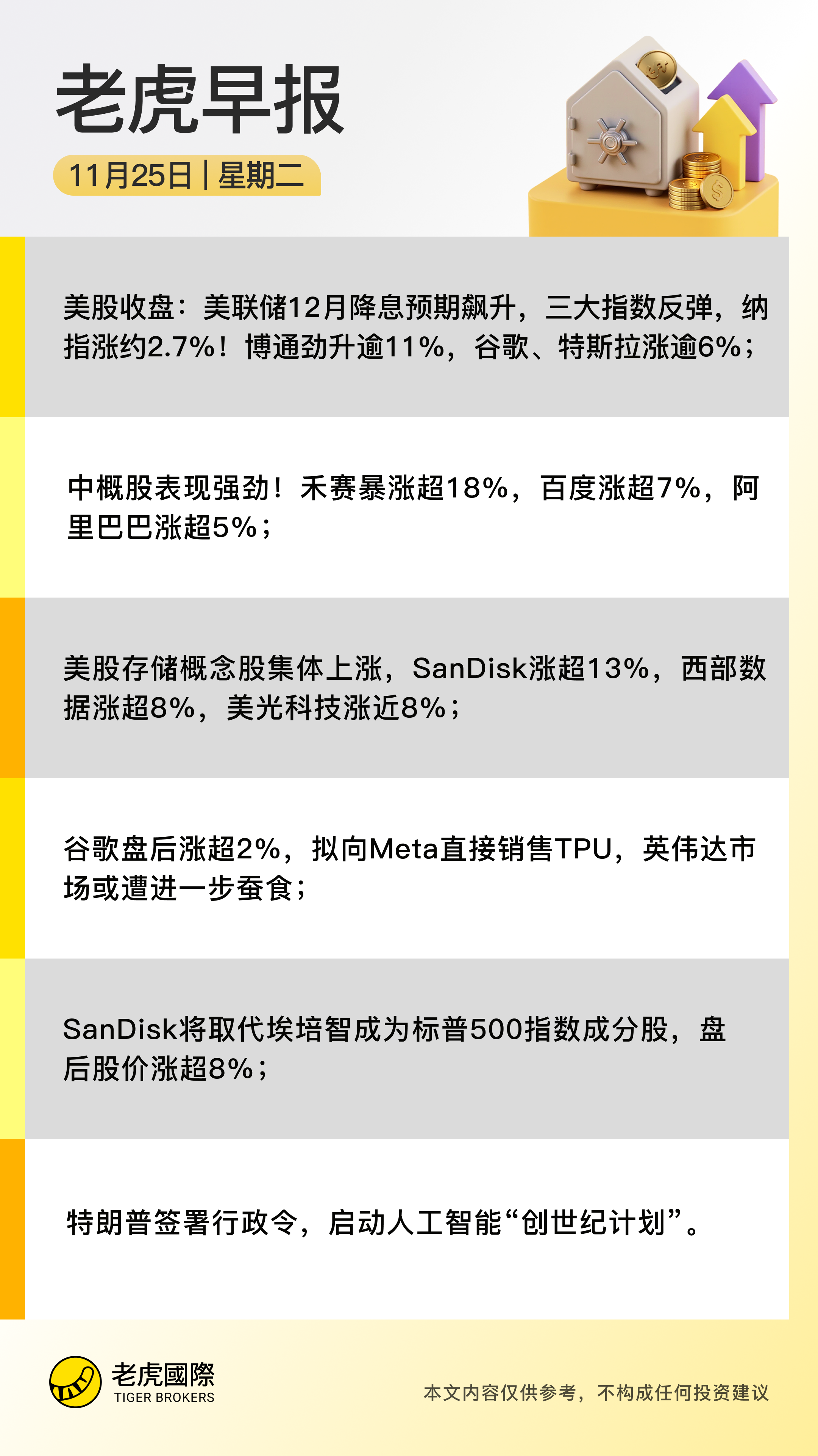 美股收盤|美聯儲12月降息預期飆升,三大指數反彈,納指漲約2.7%!博通勁升逾11%,谷歌、特斯拉漲逾6%;中概股表現強勁,禾賽暴漲超18%