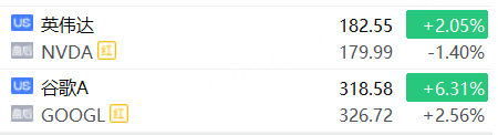 市場對谷歌股票的熱情還蔓延到其他公司,芯片股博通漲超11%,美光科技漲近8%,AMD、泛林集團漲超5%;軟件股方面,AppLovin漲逾6%,Palantir漲約5%。