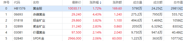 華盛資訊11月25日訊,港股黃金股普漲,赤峯黃金漲超4%,招金礦業漲超3%,紫金礦業漲超2%。