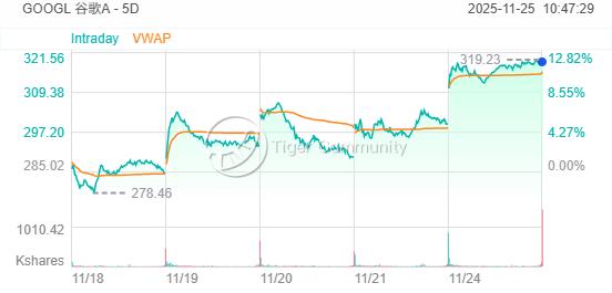 週一,博通股價大漲11.1%,成爲標普500指數當天表現最好的成分股,投資者也重新回到與人工智能交易密切相關的多個熱門科技公司。隨着Alphabet的AI主導地位日益增強,華爾街也將博通視爲與Alphabet相關的衍生投資標的。