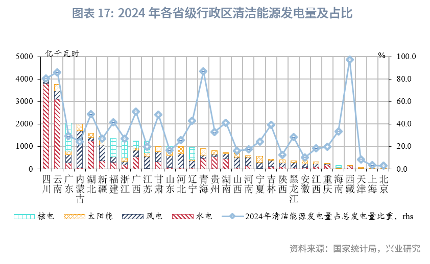 對於能源資源,“十五五”規劃建議強調“加快建設新型能源體系”,“持續提高新能源供給比重”,預計到“十五五”末,我國新增用電需求將絕大部分由新增清潔能源發電量滿足。目前,四川和雲南的水電、內蒙古的風電、新疆和內蒙古的太陽能、廣東的核電發電量位居全國前列,內蒙古、新疆、雲南的清潔能源外送規模較大,青海、西藏的清潔能源發電量佔總發電量的比重超過85%,這些清潔能源大省既承擔着擴大清潔能源供給、實現碳達峯碳中和的重大任務,也是保障國家能源安全的重要支撐。