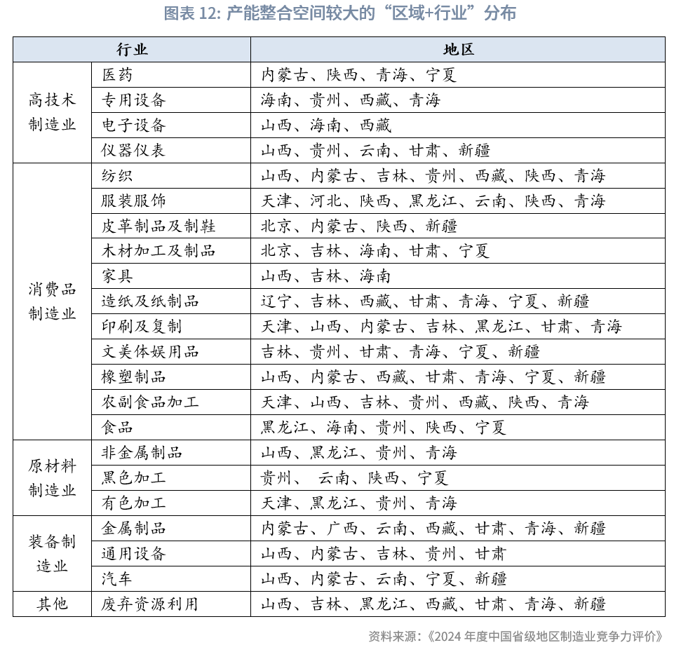 要素自由流動的趨勢下,企業將在具備相對優勢的地區合理集聚,行業競爭力較弱地區的小型企業可能被整合優化。對於《反內卷之產業集中度的視角》提及的小型企業“份額正增長+盈利負增長”的22個製造業大類行業,我們根據《2024年度中國省級地區製造業競爭力評價》(2025年11月報告),篩選出規模以上製造業競爭力評價位於一星等次的“區域+行業”,並結合產業鏈地位表現(末五位),尋找未來產能或需要進一步整合的區域和行業,包括山西、內蒙古等地區的紡織業,雲南、陝西、青海等地區的服裝服飾等(具體見下表)。
