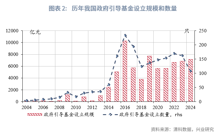 黨的十八大以來,我國的區域戰略體系逐步發展成熟,形成了以區域協調發展戰略、區域重大戰略、主體功能區戰略和新型城鎮化戰略爲核心的區域戰略體系。2017年黨的十九大報告首次將“區域協調發展”上升至國家戰略,京津冀協同發展(2015年4月)、長三角一體化發展(2019年12月)、粵港澳大灣區建設(2019年2月)、成渝地區雙城經濟圈(2021年10月)、長江經濟帶發展(2016年9月)、黃河流域生態保護和高質量發展(2021年10月)等重大區域發展戰略的規劃綱要陸續編制印發,城市羣作爲我國推進新型城鎮化發展的主體形態,成爲區域高質量發展的動力源和增長極。產業政策目標更加側重傳統產業向中高端邁進,要培育戰略性新興產業,推動製造業高端化、智能化、綠色化發展。隨着產業政策從高速增長向高質量發展轉變,各地競相佈局新興產業。2014-2016年間政府引導基金規模快速增長,2017年後政府引導基金的設立有所放緩,但仍保持在較高水平。