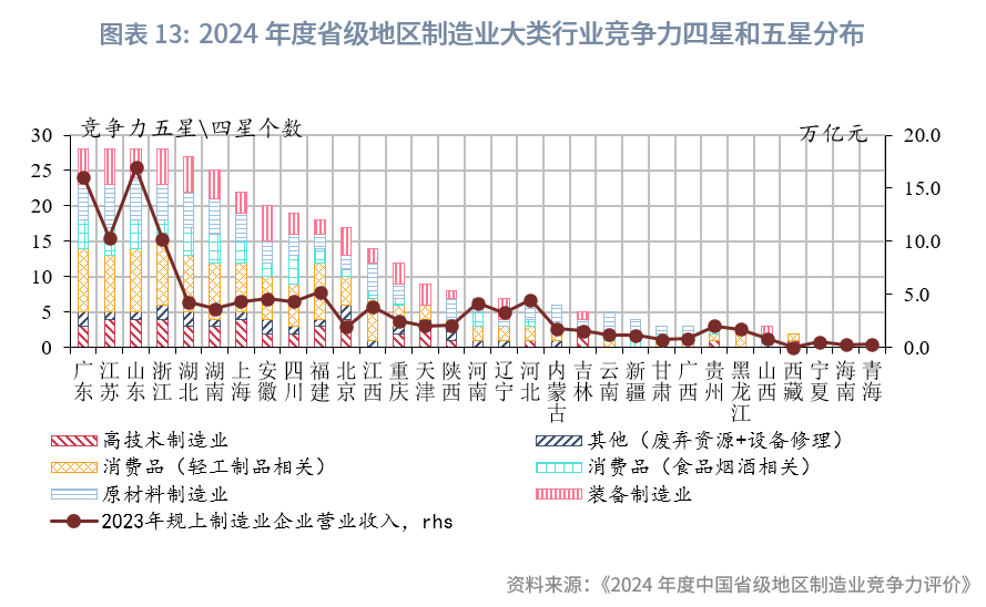 同時,製造業仍需保持合理比重,實體經濟體量大、優勢強且龍頭集聚的地區,如廣東的電子信息,江蘇的醫藥、電氣機械等,要加快運用數智、綠色技術推動產業轉型升級,努力向價值鏈高端延展。
