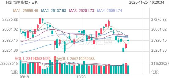 11月25日,受地緣政治緩和以及美聯儲降息預期影響,市場風險情緒回升明顯。港股三大指數延續昨日反彈,恒生指數漲0.69%盤中一度重回26000點上方,國企指數、恒生科技指數分別上漲0.87%及1.2%,恆科指一度衝高至2.2%。