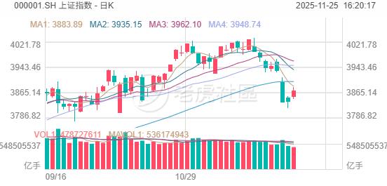 11月25日,A股三大指數今日集體走高,截至收盤,滬指漲0.87%報3870點,深證成指漲1.53%,創業板指漲1.77%。全市場成交額1.83萬億元,較前一交易日增量858億元,4300股上漲。