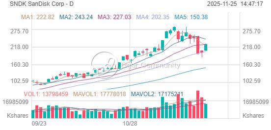 公告發布後,Sandisk 股價在盤後上漲 超過7%,過去三個月股價累計上漲 近 400%。