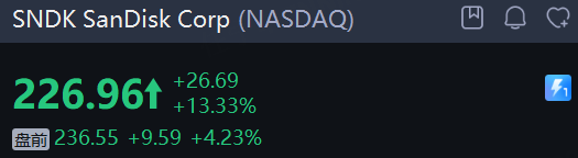 SanDisk Corp 續漲超4%,公司將於週五納入標普500指數。