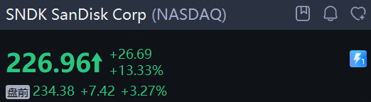 SanDisk Corp 續漲超3%,公司將於週五納入標普500指數。