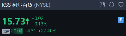 柯爾百貨 暴漲超27%,第三季度銷售額超預期,上調全年營業利潤率展望。
