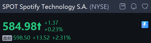 音樂流媒體平臺 Spotify Technology S.A. 漲超2%,此前報道稱該公司將在明年第一季度上調美國市場價格。