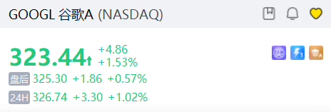 11月26日,美股夜盤時段,谷歌A續漲1%,隔夜其股價創新高市值逼近4萬億美元。