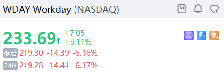 Workday跌超6%,季度訂閱表現平淡。