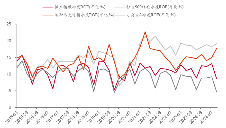 從中美比較看,我國上市公司的ROE中位數大約不足美股的三分之一,這大致可以解釋爲何“盈利纔是股市晴雨表”的原因。我國要實現經濟高質量發展,任重而道遠。
