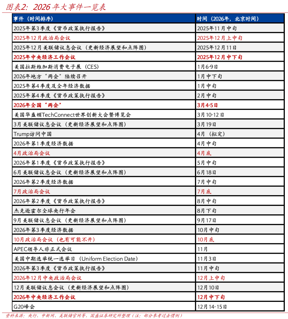 1、主基調:“十五五”定調積極,預計2026年GDP目標仍定爲5%左右偏高水平,政策基調偏積極、偏擴張,確保“十五五”良好開局。