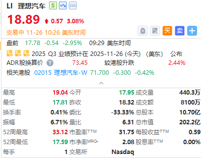 華盛資訊11月26日訊,美股盤初,熱門中概股走勢分化,理想汽車由跌轉漲至3%,公司Q3營收大跌導致單季淨虧損,CEO李想電話會稱迴歸創業模式押注具身智能;