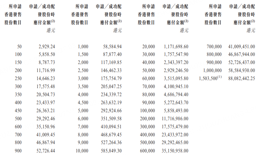 乙組門檻爲9萬股,申購所需資金約527.26萬港元。