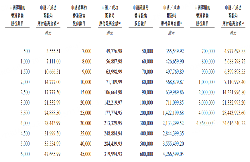 乙組門檻爲80萬股,申購所需資金約568.88萬港元。
