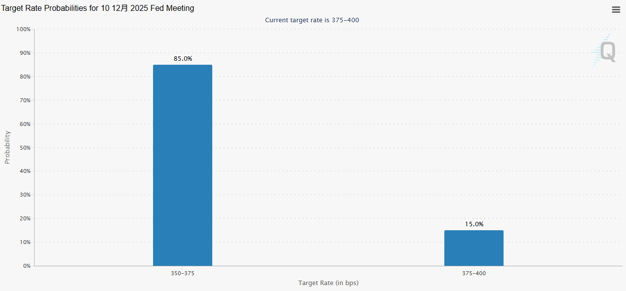 芝商所“美聯儲觀察”工具顯示,市場預計該行12月會議上降息25個基點的概率爲85%。Diton表示,“如果美聯儲的政策令人失望,可能會出現拋售潮。但我認爲這種情況不會發生。”