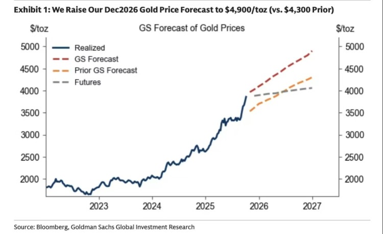 其中,黃金最獲外資大行青睞,包括美銀、高盛、德意志銀行、滙豐在內的多家大行均看好2026年黃金走勢。其中,高盛預計明年底黃金有望觸及4900美元/盎司,較當前水平漲近20%;高盛預計美聯儲明年將降息75個基點,利率的降低將進一步支撐黃金等無收益資產的表現,此外,各國央行加大力度購金也是支撐黃金錶現的因素之一。滙豐的預測相對保守,該行預計2026年金價將達到4400美元/盎司,並認爲對美聯儲獨立性及貨幣政策的質疑將使得黃金成爲重要的避險資產。